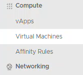 2. Dans le panneau de navigation de gauche, sous Calcul, sélectionnez vApps pour afficher une liste de vApps dans le VDC.