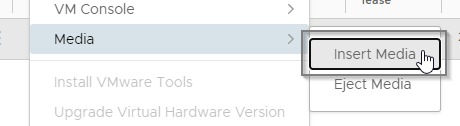 16B. Dans la liste des Virtual Machines, sélectionnez Media > Insert Media dans le menu.