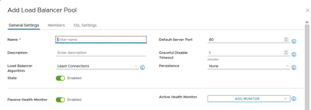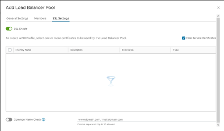 - SSL enable : Activation ou non du chiffrement entre le loadbalancer et les membres du pool. Ces certificats sont utilisés par le loadbalancer pour s’authentifier auprès des membres du pool. Ils doivent être ajoutés dans le menu global Administration > Certificate Management > Certificates Library