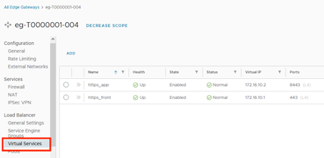 Vous cliquez sur Virtual Services (VS) du menu Load Balancer :
