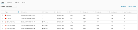 En cliquant sur l’onglet « Logs » vous pouvez afficher les requêtes reçues par le VS. Par défaut seul les requêtes en erreurs s’affichent. Si vous souhaitez afficher toutes les requêtes, il faut activer l’option « Non-Critical Logging » dans la configuration du VS et enlever le filtre appliqué à la colonne « Type ».