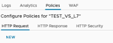 En cliquant sur l’onglet Policies, vous aurez la possibilité de gérer les requêtes et les réponses transitant par le VS.